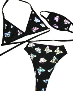 REFLECTIVE BUTTERFLY | Triangle Top + High Waist High Cut Bottoms + Mask, Women's Festival Outfit, Rave Set