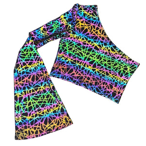 RAINBOW STATIC | REFLECTIVE | One Shoulder Bell Sleeve Top, Women's Festival Top, Rave Top