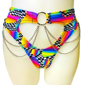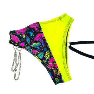 ELECTRIC MUSHROOM | High Waisted High Cut Chain Bottoms with Leg Wrap, Festival Bottoms, Rave Bottoms, Black Rave Outfit