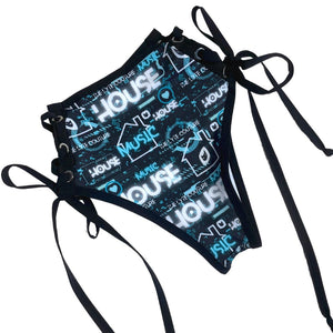 HOUSE MUSIC | High Waisted High Cut Side Tie Bottoms, Festival Bottoms, Rave Bottoms, Black Rave Outfit
