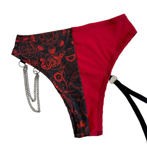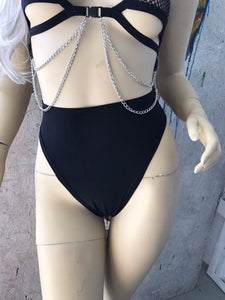 SPELLCASTER | Split High Waisted High Cut Chain Bottoms with Leg Wrap, Festival Bottoms, Rave Bottoms, Black Rave Outfit