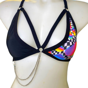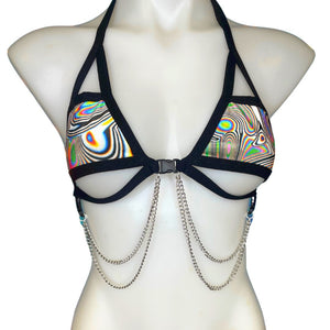 RAINBOW STATIC | REFLECTIVE | Chain Cage Top, Festival Top, Rave Top with Chains