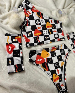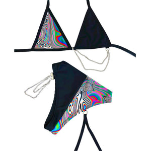 LUCID DREAMS | Mismatch Triangle Chain Top + High Waisted High Cut Chain Bottoms with Leg Wrap, Women's Festival Outfit, Rave Set
