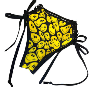 YELLOW SMILES | High Waisted High Cut Side Tie Bottoms, Festival Bottoms, Rave Bottoms, Black Rave Outfit