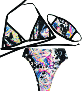 REQUIEM | Cage Top + High Waisted High Cut Bottoms + Mask, Women's Festival Outfit, Rave Set